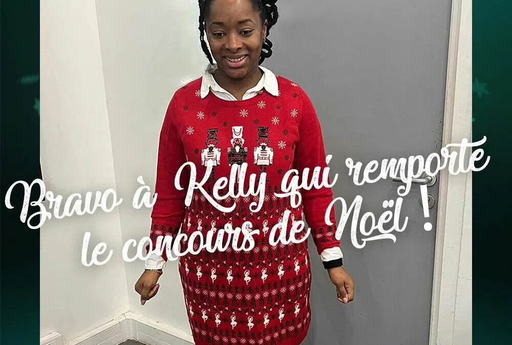 🎄🏆 Bravo à Kelly Marous, gagnante du concours du pull de Noël le plus original ! Son style unique a brillé pendant les fêtes.